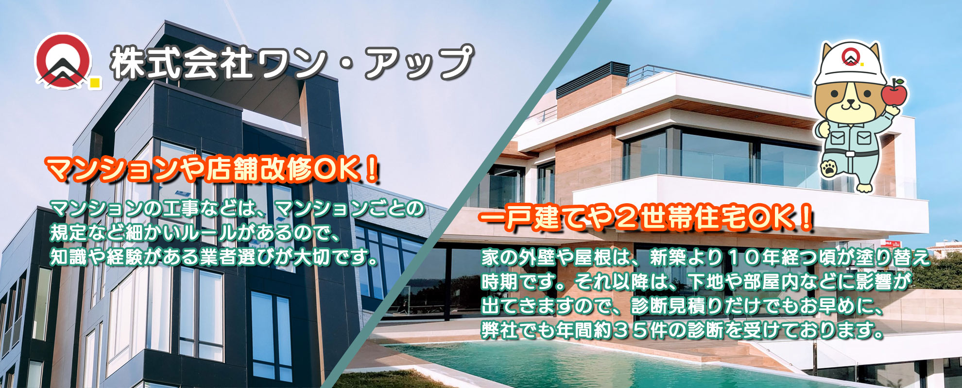地域の皆様に愛されて30年、一般的な戸建ての塗り替えや店舗の改修工事、TVCMなどでもお馴染みの大規模修繕工事など多数の実績!!
